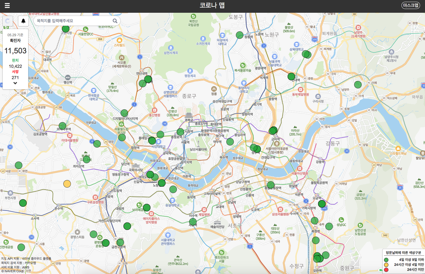 Ende Mai 2020 standen den Koreanern insgesamt 59 verschiedene Corona-bezogene Apps zur Verfügung. Diese sogenannten Corona-Apps bieten Informationen zum Kauf von Masken und Standortverlauf der Infizierten. Sie wurden nicht zuerst von der Regierung entwickelt, sondern von privater Hand, unter anderem auch von Studierenden. Eine studentische Gruppe entwickeltet die App „Corona Map“, die auf einer Karte den Standortverlauf von Infizierten zeigt, unter Verwendung der von der Regierung bereitgestellten Open Data.