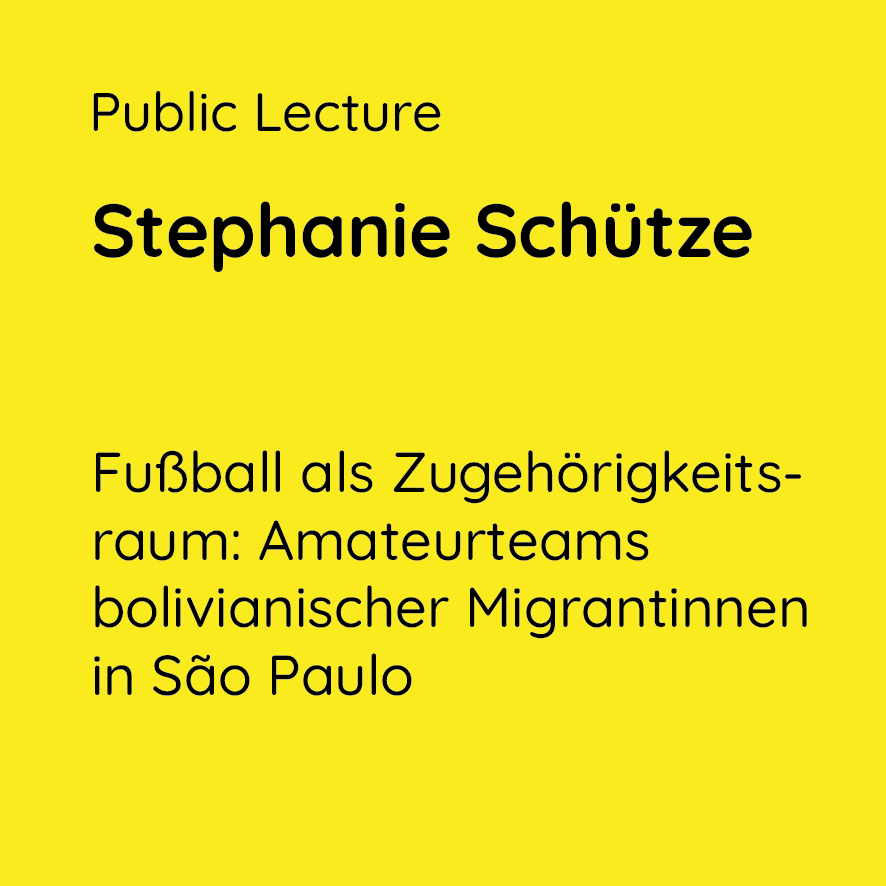 Plenum w/ Stephanie Schütze (FU Berlin): „Fußball als Zugehörigkeitsraum: Amateurteams bolivianischer Migrantinnen in São Paulo“