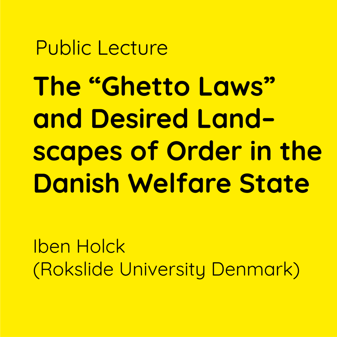 Public Lecture: The “Ghetto Laws” and Desired Landscapes of Order in the Danish Welfare State
