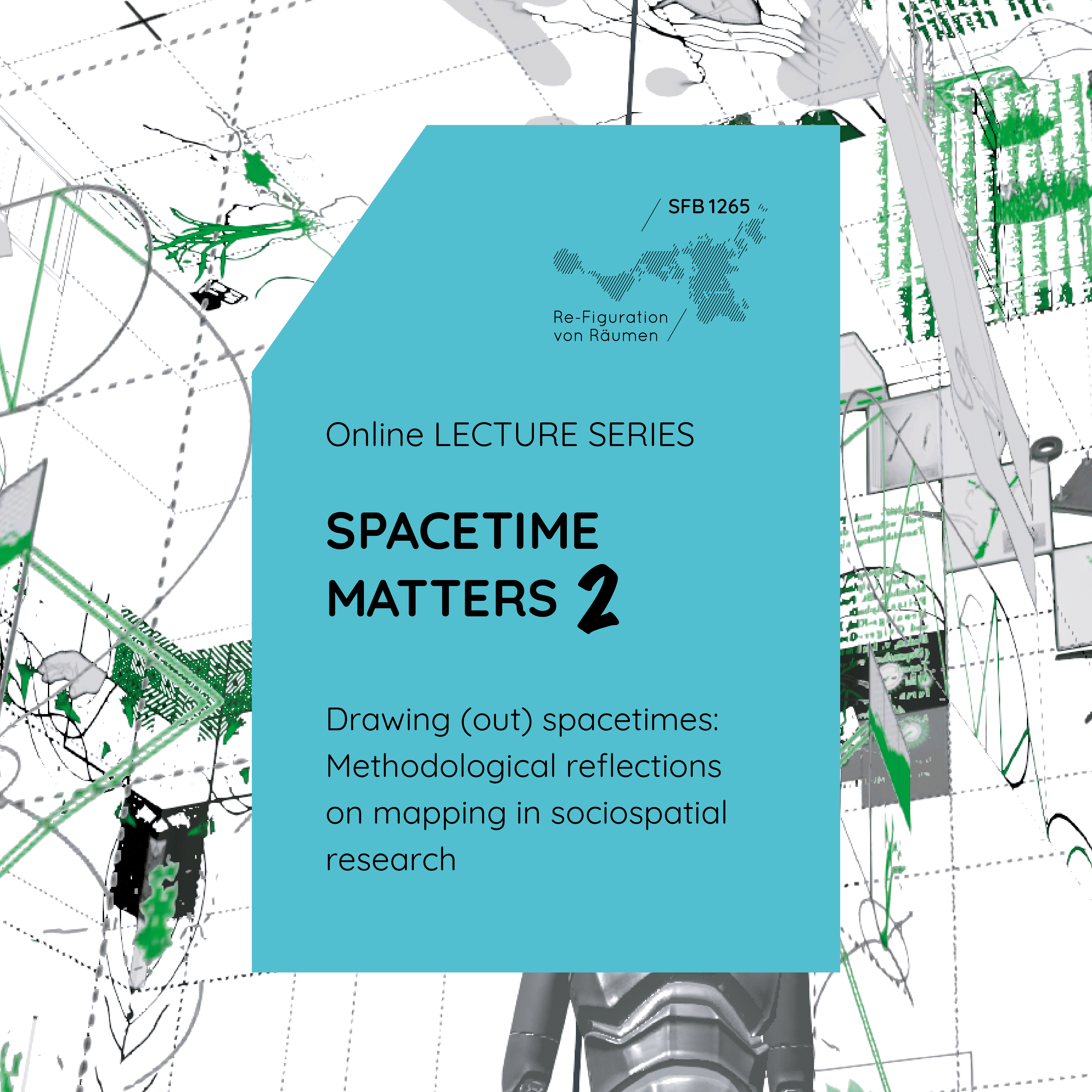 Berlin is a growing centre for innovative sociospatial research, especially regarding novel inter- and transdisciplinary mapping procedures reaching across the Berlin university landscape (Technische Universität, Universität der Künste, and Humboldt Universität zu Berlin) around the research consortium CRC 1265. In a world undergoing profound and rapid transformation, there is an urgent need to empirically grasp complex processes of social and environmental change from a spatial perspective. One such a perspective, which we refer to as the refiguration of spaces, focuses on the tensions and contradictions within relational processes and challenges us to reconsider space and time together in new ways. Addressing this provocation, we have curated the talk series SPACETIME MATTERS which invites international spatial scholars integrating temporalities into mapping methods to discuss their work. At the core of our reflections lurks the idea of spacetime advanced by Doreen Massey, and that we are developing further at the CRC 1265 to conceptualise the multiplicity of spaces existing simultaneously with different temporalities. To empirically grasp multiple spatialities and temporalities, mapping protocols are of great methodical potential. As a working group ‘Hybrid Mapping Methods’, we worked out an interpretative mapping approach for the synthesis of shifting sociospatial interdependencies. With this lecture series, we engage in international debate around this potential and challenges of mapping. Hence SPACETIME MATTERS turns over questions such as: What challenges occur for integrating time and space into mapping protocols? How can multiple simultaneous temporalities be spatialities in mapping? What possibilities and challenges do digital technologies (such as animation or AI) present for mapping spacetimes? One of the aims of the talk series is to produce an anthology on spacetime mapping.